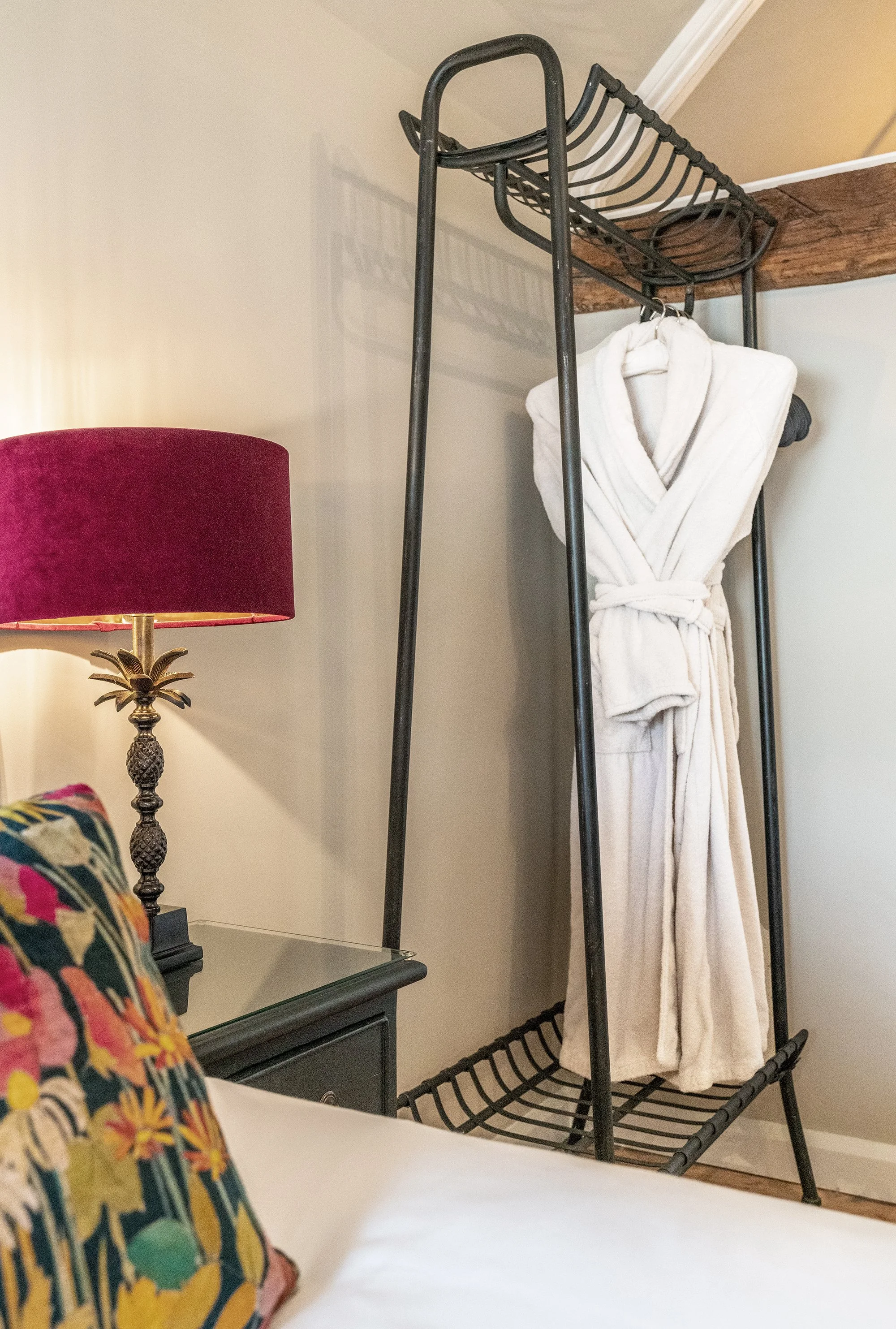 The kitchen is fully equipped; with everything you could possibly need, there's small table for intimate dining. Upstairs, beneath exposed rustic beams, find a beautiful bedroom with a king-sized bed draped in sumptuous White Company bed linen.